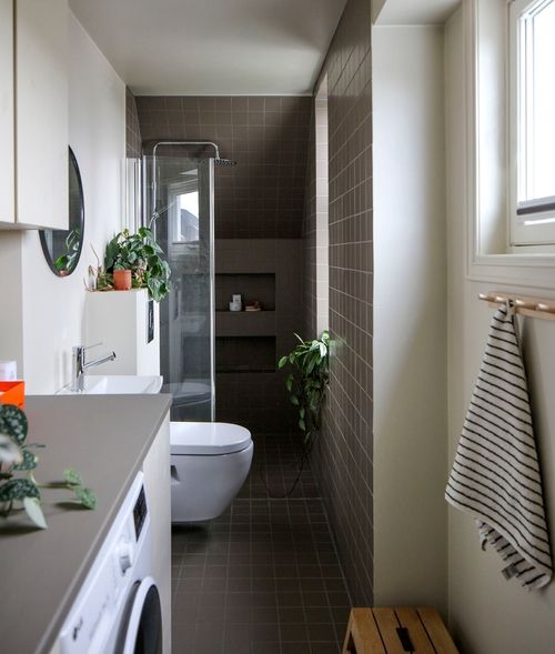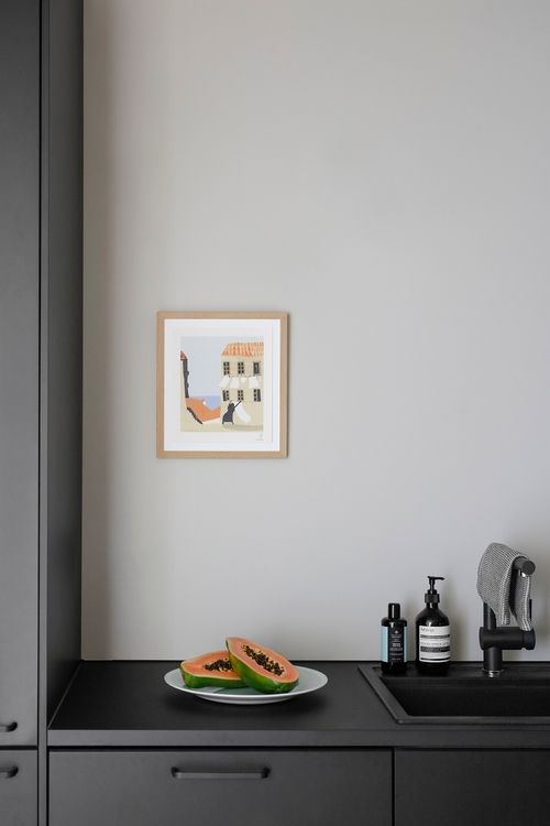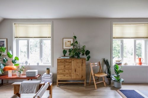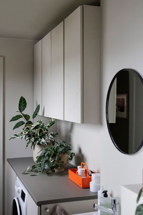 Omfattende rehabilitering av en leilighet over to etasjer, i en smørgul bygård fra 1899 på Storhaug i Stavanger. Et stramt budsjett sto ikke i veien for gode, estetiske løsninger og en optimal utnyttelse av arealene. Stedbygde oppbevaringsløsninger utnytter plass under skråtak i loftetasjens soverom. Flislagt bad– og vaskerom i behagelige jordfarger med romslig dusjsone. En restaurert vindeltrapp i furu er leilighetens pièce de résistance og fargepaletten bestående av lyse pasteller med kontraster i olivengrønn knytter det hele sammen. Foto: Marian Strand